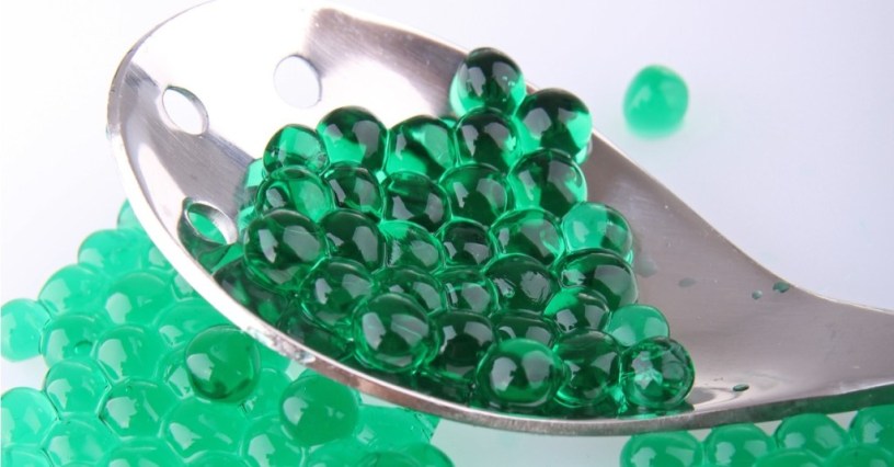 It uses an interesting property of some gelling ingredients. These ingredients only gel in the presence of certain molecules, like calcium or potassium. I personally use sodium alginate, an algae extract, in combination with calcium lactate, though there are many ingredients that will work.